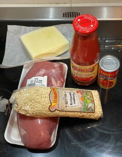 - Poor the remaining sauce over the pasta and veal. The sauce must cover the pasta. If some sauce has evaporated during cooking, replenish with with hot water until the liquid is 3cm above the pasta.