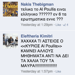 My connections in Cyprus know about my beliefs on the preservation of the Greek language as a means of maintaining our Greek identity. This is more pronounced on a politically turbulent island. So, when they see my “Al Poullis” handle, some wonder whether I have lost my mind! They quickly assume I jumped ship, and go as far as accusing me for …treason. I have betrayed my Greek identity, they conclude, therefore I have no say in any issues on the island. They go on and on rumbling and mocking. It’s quite funny to listen to some of them, actually!